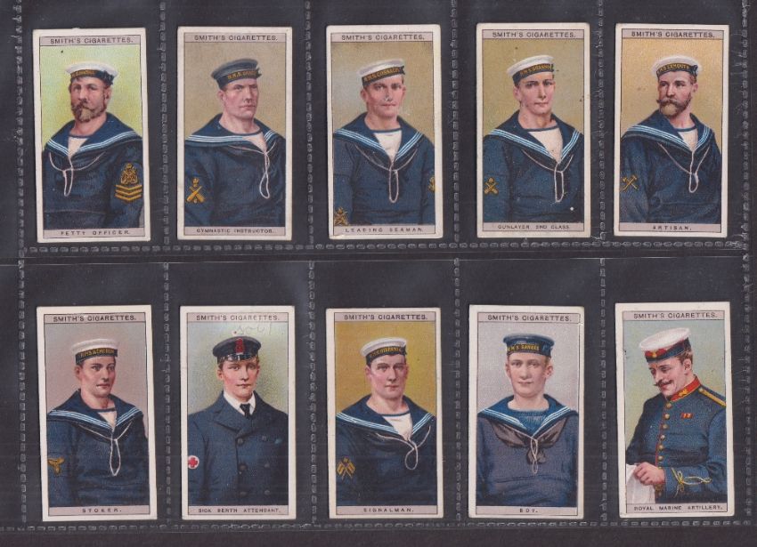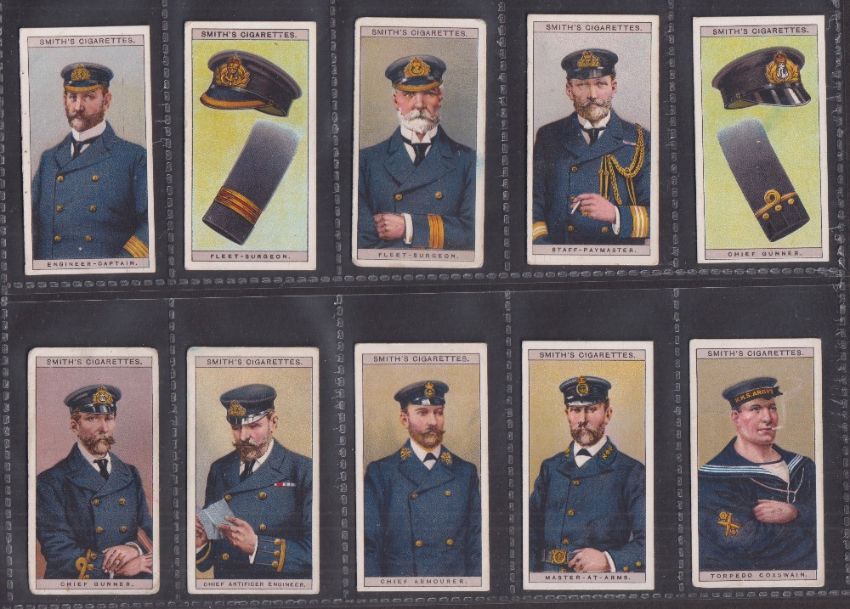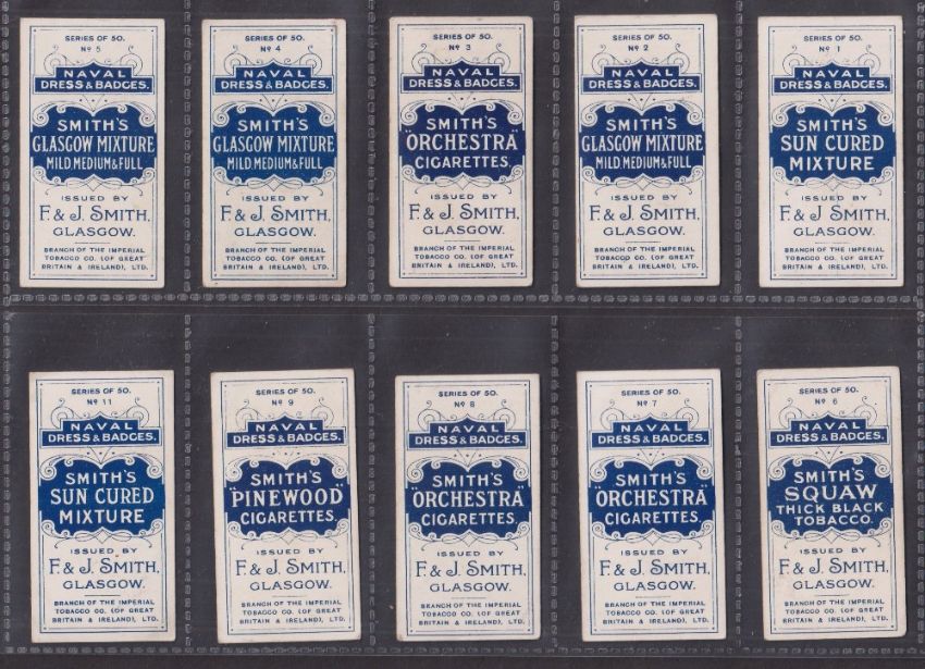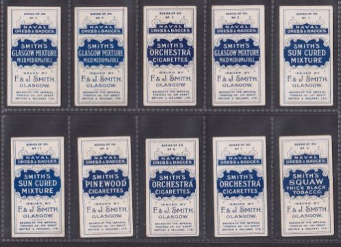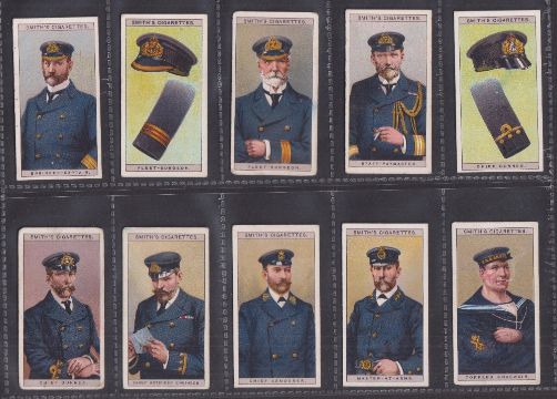 Cigarette cards, Smith's, Naval Dress & Badges (Non Descriptive, mixed backs) (41/50, missing nos 10, 15, 18, 23, 28, 39, 40, 42 & 49) (some with slight faults but mostly gd or better) (41)