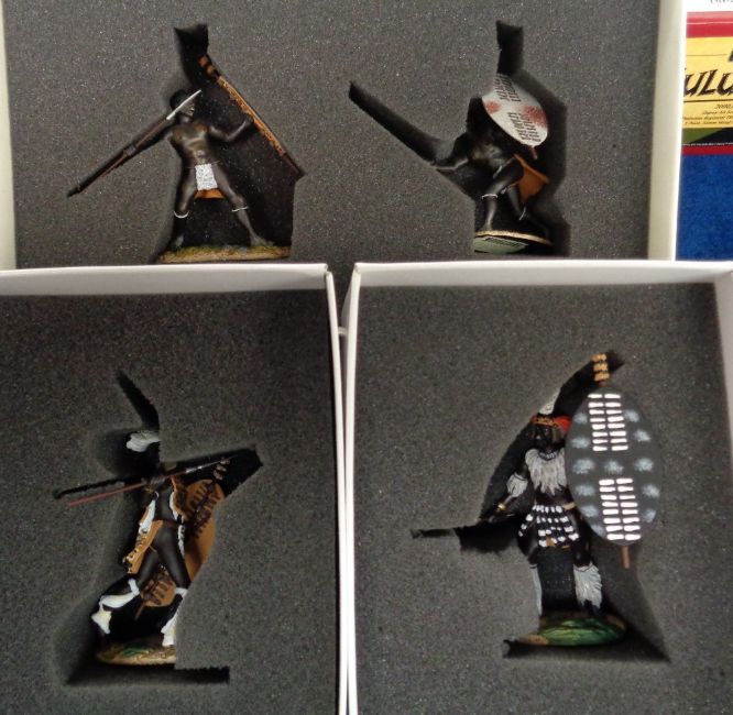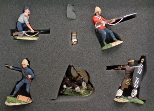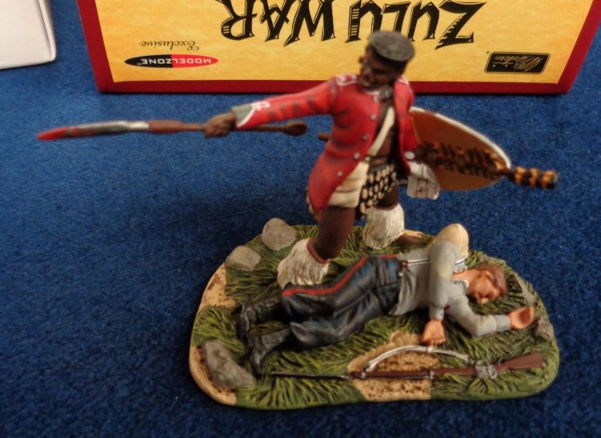 Britains Model Figures, Zulu War, 6 Britains boxed models to comprise 20044 The Closing Stages of Isandlwana, 20040 The Washing of the Spears Set, 20010 Zulu Warriors Attacking Set, 20048 Zulu Induna, 20003 Zulu uThulwana, 20001 Zulu uMbonambi (vg)