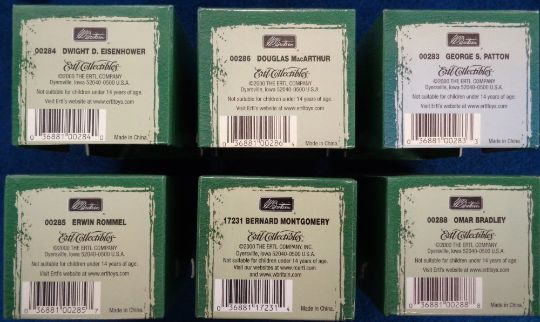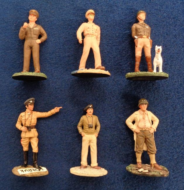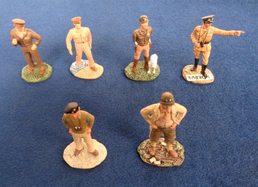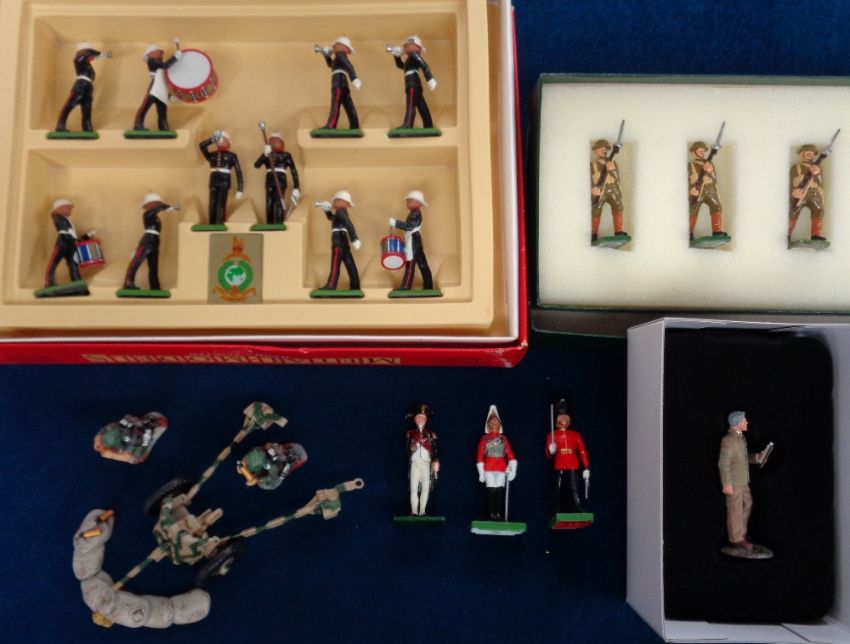 Britains Model Figures, a selection of boxed model soldiers to comprise Britains Leaders 17231 Bernard Montgomery, 00288 Omar Bradley, 00285 Erwin Rommel, 00283 George S. Patton, 00284 Dwight D. Eisenhower and 00286 Douglas MacArthur. Boxed RAF 25020 Sir Barnes Wallis and 7204 Hand Painted Metal Models set of Royal Marines Drums and Bugles (10 figures). Colemans Cheshire Volunteer boxed set (2 missing) and Pipeline Miniatures German Anti-tank gun and 3 other individual un-boxed figures (gen vg)