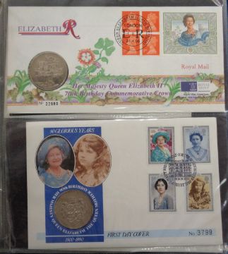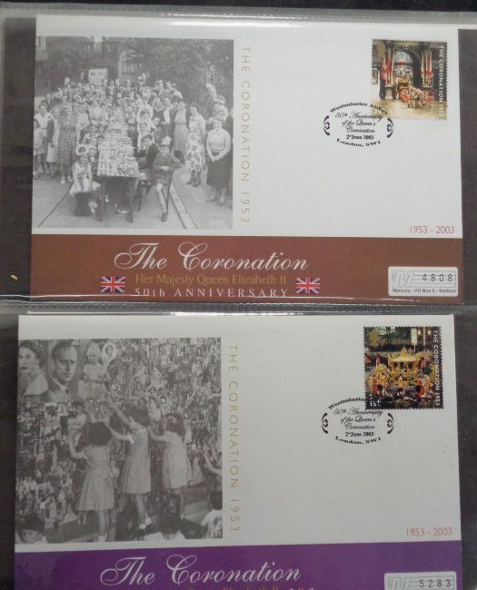 Stamps, Collection of coin covers, first day covers and GB torch relay covers housed in 7 albums, to include 50th anniversary of the coronation with Westminster Abbey postmark. Some with matching PHQ cards. (200+)