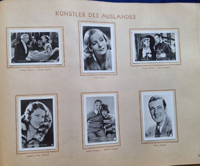 Cigarette cards, Germany, Manoli Gold und Film, album 4 (set 168 cards which are numbers 505-672) stuck in special album, includes Marlene Dietrich, Greta Garbo etc (cards stuck down, fronts gd, album has minor wear)