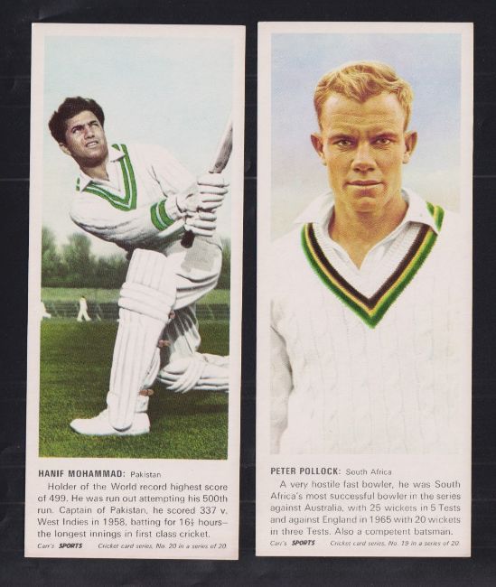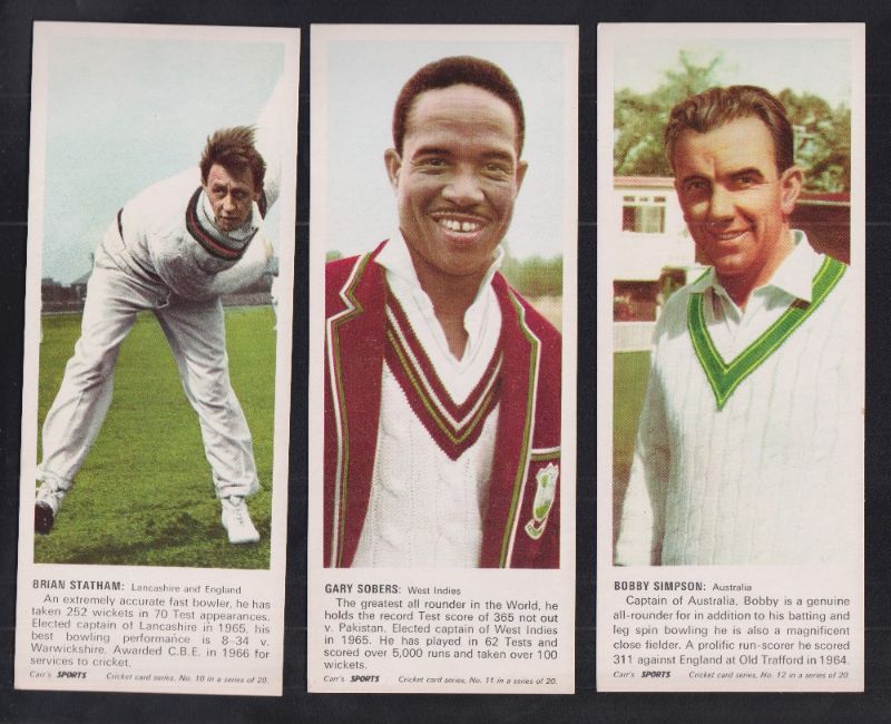 Trade cards, Carr's Biscuits, Cricketers, 'G' size (set, 20 cards) (gd/vg)