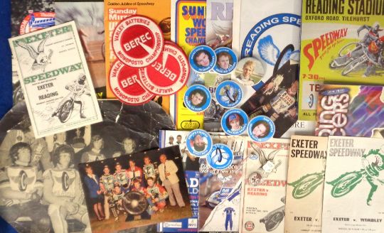 Speedway, a quantity of mostly Reading Speedway related items inc. photo's, badges, programmes, 1970's onwards, etc the lot also includes a vintage Wembley Supporters Club Speedway Badge & a few other items (mixed condition, fair/gd)