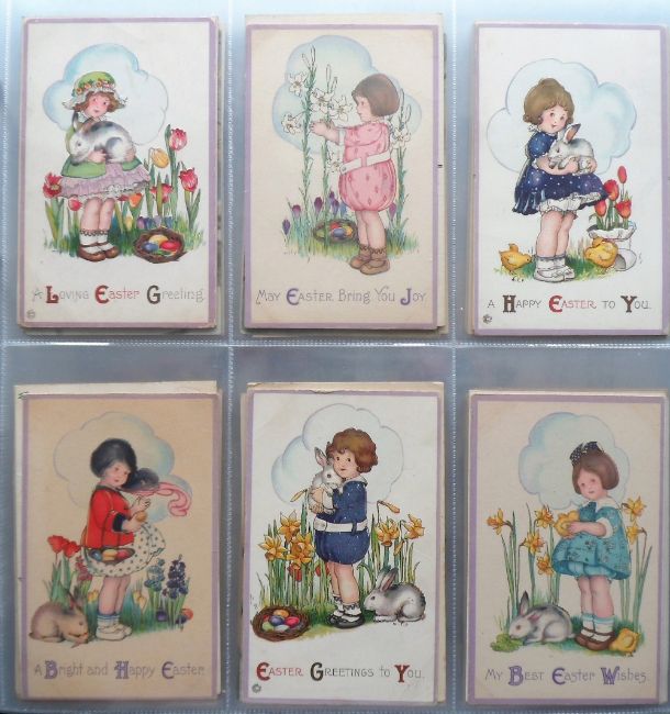 Postcards, Greetings, a greetings collection of approx. 240 cards in modern album, with Xmas, Easter, New Year, Thanksgiving, Valentine's etc. Artists include Clapsaddle, M.E.P Bowley, Bertiglia, Peto, Hansi, Ebner, Marsh-Lambert etc. Themes include Uncle Jack, toys, snowmen, snow scenes, winter sports, cars, pigs, elves, children, airships, balloons etc (mixed condition)