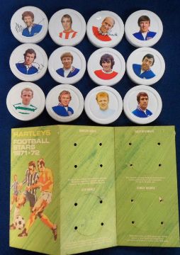 Trade issue, Hartley's (Jam), Football Stars (Jam Jar Lids) (set, 12 lids, three signed, Bobby Charlton, Alan Ball & Peter Osgood), sold with special official album (gd)