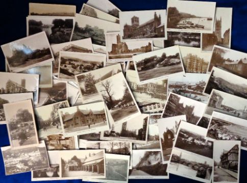 Postcards, a mixed UK topographical selection of approx. 71 RPs all published by Kingsway (WHS), with street scenes at Windermere, Birkenhead, Duchy Square Princetown, council house Bristol, Soldiers Institute Longmoor Camp, Hadley Common, Ford's Hospital Coventry, The Cross Worcester, Baxter statue Kidderminster, Guildhall Totnes, Avening Rd Nailsworth etc. Also distant village views, buildings, seaside views etc (gd)
