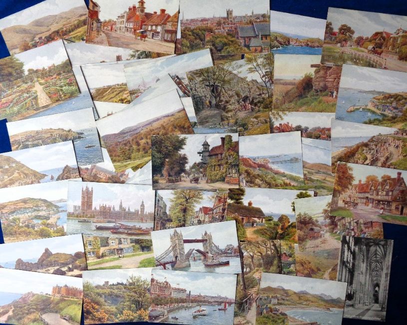 Postcards, Quinton, a selection of approx. 54 UK scenic view cards illustrated by A.R Quinton, mainly towns, cities, villages, seaside views etc (mixed condition)