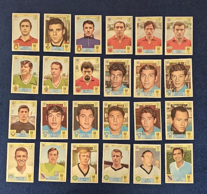 Football stickers, Panini, Mexico 70, a collection of 70+ loose stickers inc. Bobby Moore, Didi (Brazil), Rivelino (Brazil), Zoff (Italy), Carlos Alberto (Brazil), Mazzola (Italy), Vogts (West Germany) etc (gd/vg)