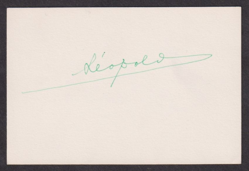 Autograph, Royalty, King Leopold III of Belgium (1901-1983), a signature in green ink on cream card (approx. size 11.5 x 7.5 cms) (gd)