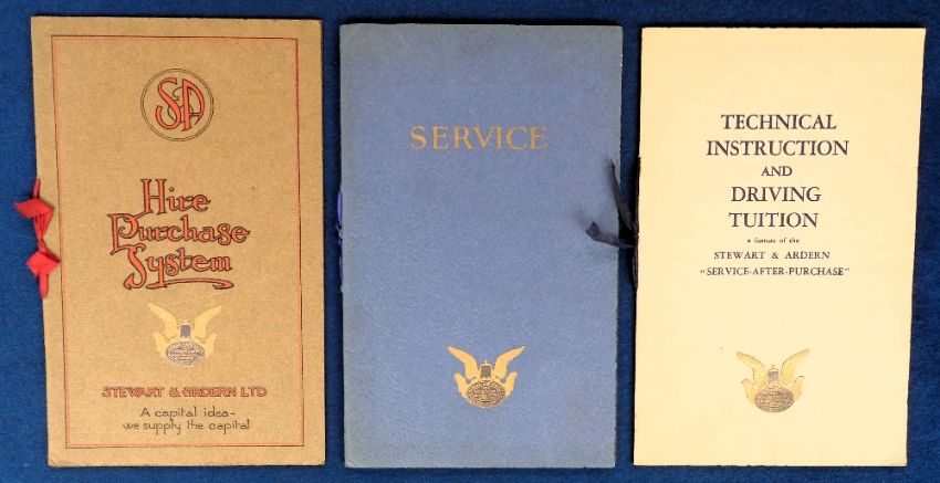 Transportation, Motoring, Stewart & Ardern Ltd., Morris Cars. 3 1930s booklets 'Hire Purchase System', 'Technical Instruction and Driving Tuition' and 'Service'. Each one in very good condition and attractively illustrated with photographs of cars, workshops, offices, shop front etc. (vg)