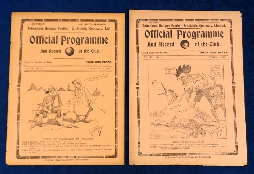 Football programmes, Tottenham Hotspur, 2 Home Reserve programmes, both v Fulham, 1st Jan 1912 South Eastern League (ex-binder, vg) & 28 Oct 1922, London Combination (gd)