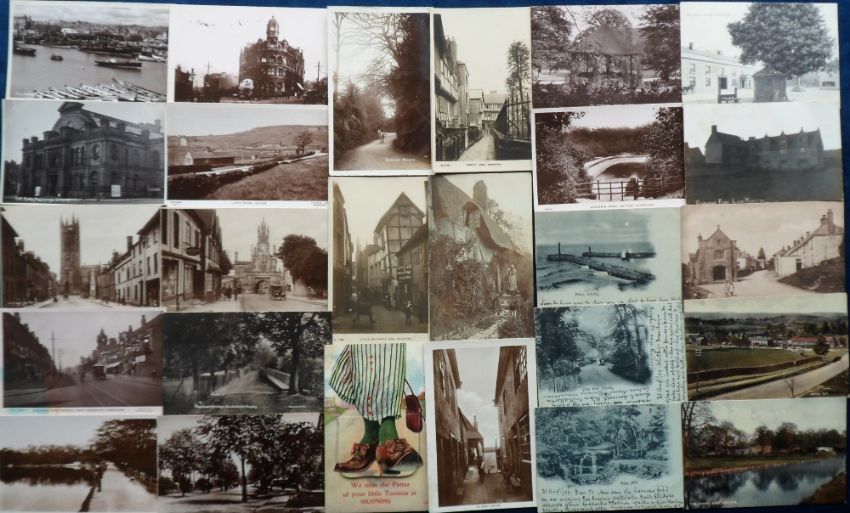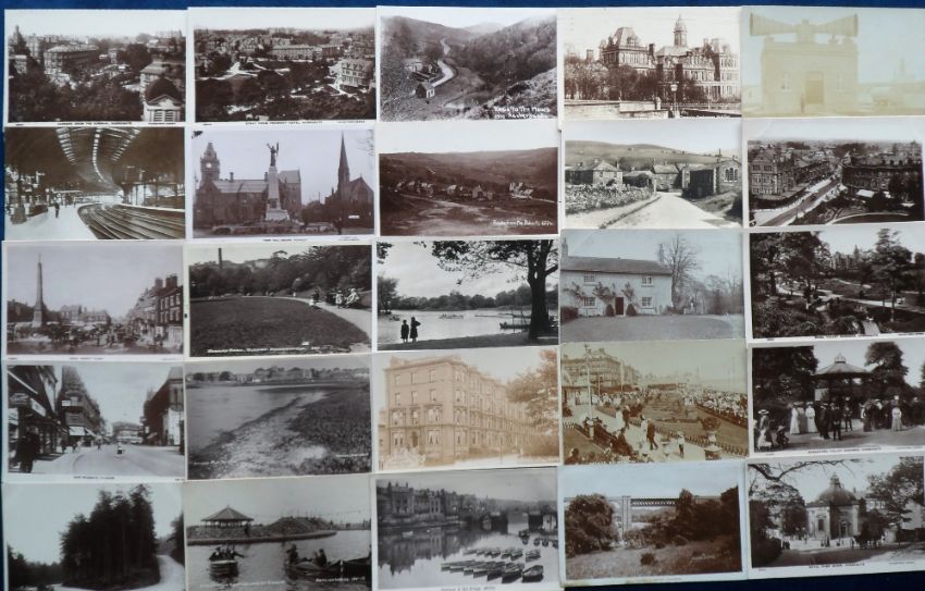 Postcards, a mixed UK topographical selection of approx. 61 cards inc. Warwickshire, and Yorkshire, with many RPs inc. York station interior, Norman Park Birkby, Market Place Ripon, Hornsea, Boating Lake Redcar, Hathersage, Rivelin, Martin's Boarding House Scarborough, Harbour Whitby, Crossley Orphanage Halifax, Swaledale village, Bridlington Parade, viaduct Conisborough, Upper Moors Colcar, Blackroot Pool Sutton Park, Clifton Rd Rugby, Bandstand Warley Woods, Keeper's Pool Sutton Coldfield, Goodwins Farm Long Marston, Avon Bridge Newbold etc (mainly gd)