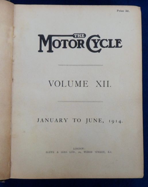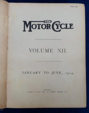 Transportation, Motoring, The Motor Cycle Volume XII, January to June 1914, a bound volume published by Iliffe & Sons of London (cover grubby and worn o/w gd)