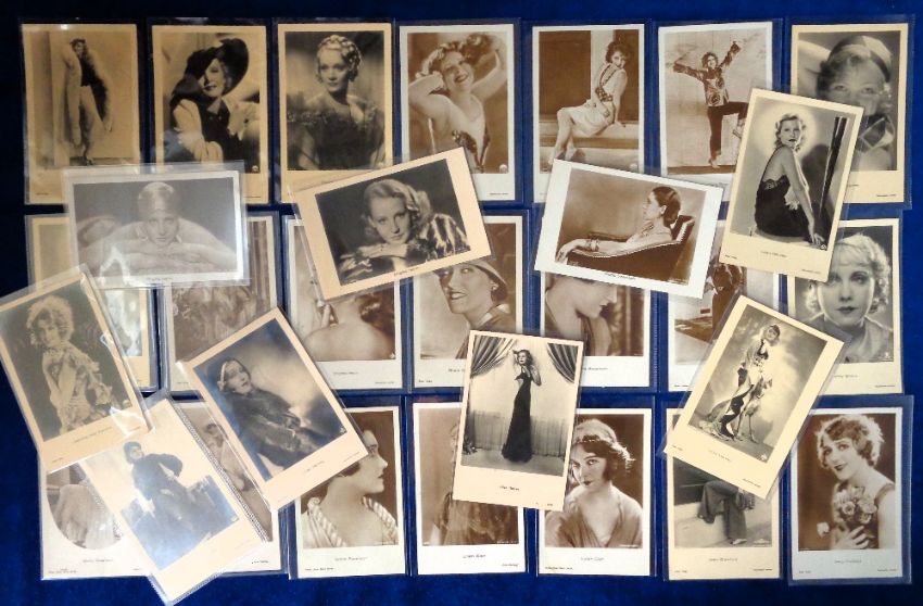 Postcards, 30 better Ross female cards to include Marlene Dietrich (3), Clara Bow (3), Brigitte Helm (5), Gloria Swanson (7), Lilian Gish (2), Joan Crawford etc. (gd)