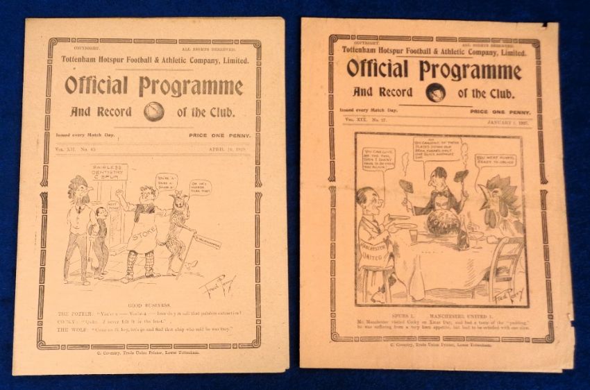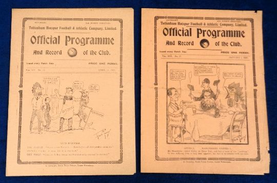 Football programmes, Tottenham Hotspur, 2 Home programmes, both v West Ham Res 10 Apr 1920 & 1 Jan 1927, both London Combination (gen gd)