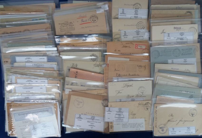 Postcards, Postal History, a military German (WW1 and later) postal history selection of approx. 185 cards, postal stationery and covers, with various Feld Post covers with a wide variety of postmarks and cachets, many Third Reich. Also Registered covers (3), Feld Post letter forms inc. Calendar Cover, official Army form (urgent), Call-up form, Combat School, Dumb Cancel (secret), censored covers, P.O.W mail (various camp cachets), P.O.W Xmas card (Stalag XXI A), Air District Command XIII at Nuremburg, Mute Post cancel, Central Tracing Bureau. Viewing recommended (mixed condition)