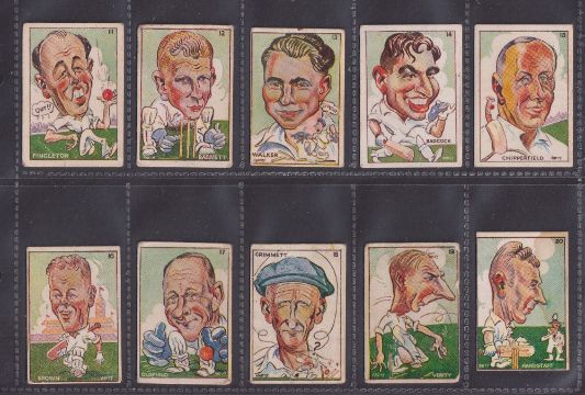 Trade cards, Cricket, Sweetacres, Cricketers 1938 Coloured Caricatures (set 24 cards) including Bradman (varying dimensions throughout otherwise fair/gd)