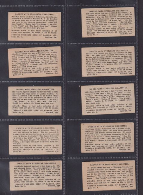 Cigarette cards, Canada, Tobacco Products Corp., Movie Stars, Series no 4, 86 different cards inc. Buster Keaton, Charlie Chaplin, Hoot Gibson etc (mixed condition, fair/gd)
