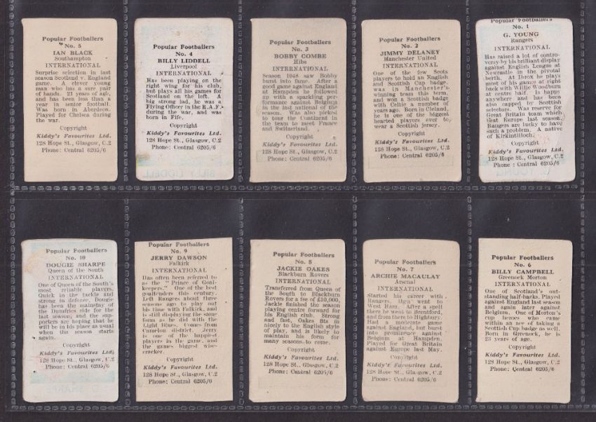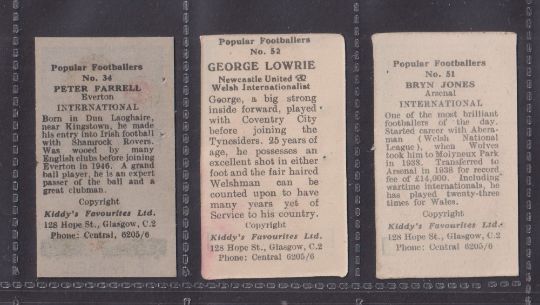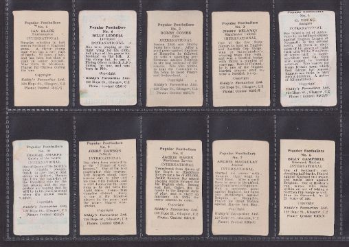 Trade cards, Kiddy's Favourites, Popular Footballers (set 52 cards) including scarce number, plus colour variation number 34, grey card (fair/gd)