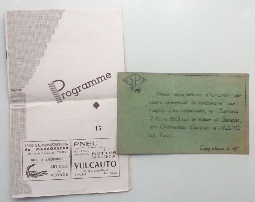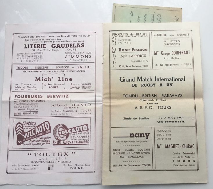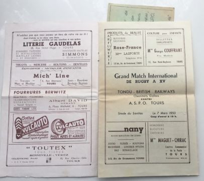 Rugby programme & ticket, ASPO Tours v Tondu British Railways, 7th March 1953, scarce programme and ticket for game played in France (gd) (2)