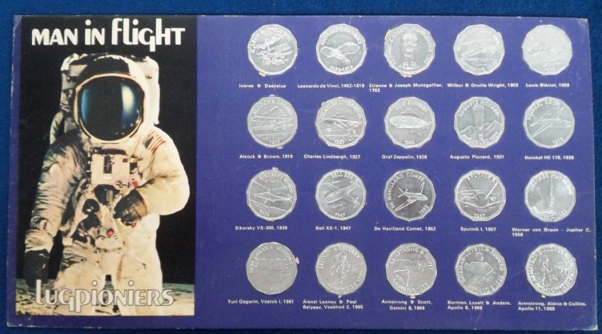 Trade issue, South Africa, Shell, Man in Flight / Lugpioniers, set of 20 coins mounted on special dual-language card (gd)