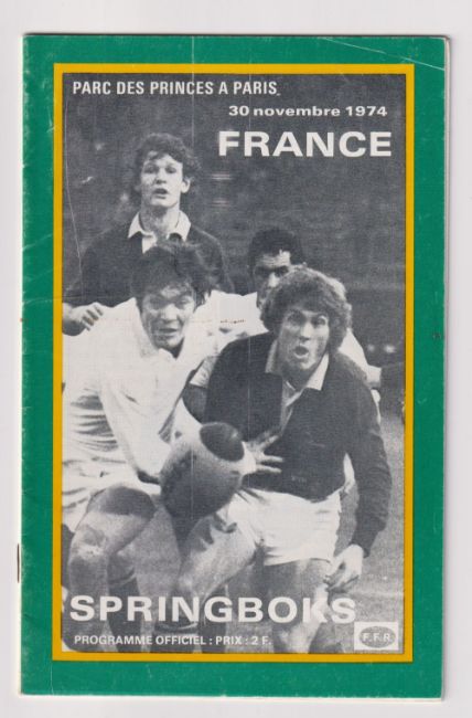 Rugby programme, France v South Africa, 30th November, 1974, 2nd Test programme from game played at Parc des Princes, Paris