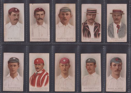 Cigarette cards, Wills, Cricketers, 1896 (set, 50 cards) inc. W.G. Grace (slight scuffing to back), Ranjitsinhji (slight crease) etc (mixed condition, poor/gd, 8 with back damage)