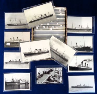 Shipping, Cunard, 240+ postcard sized images of Cunard White Star ships. A mix of original images and reproductions of older images, all annotated to the reverse, presented in sleeves and listed alphabetically. Copyright will apply to some (gen vg)