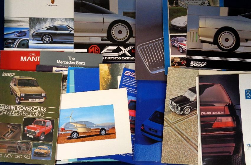 Motoring, approx. 110 car brochures most dating from the 1980s and 1990s to include Porsche, Opel, Mercedes, Ford, Vauxhall etc. (gd)