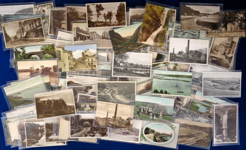 Postcards, Ireland, a mixed Ireland collection (North & South), of over 100 cards, with RPs of Cottage Hospital Ballymena, Broadwater Spinning Mill, Port Bradon, Upper main St Larne, Town Hall Ballymena etc. Also printed card of Bleaching Works Ballymena, scenic views, towns and villages (mainly gd)