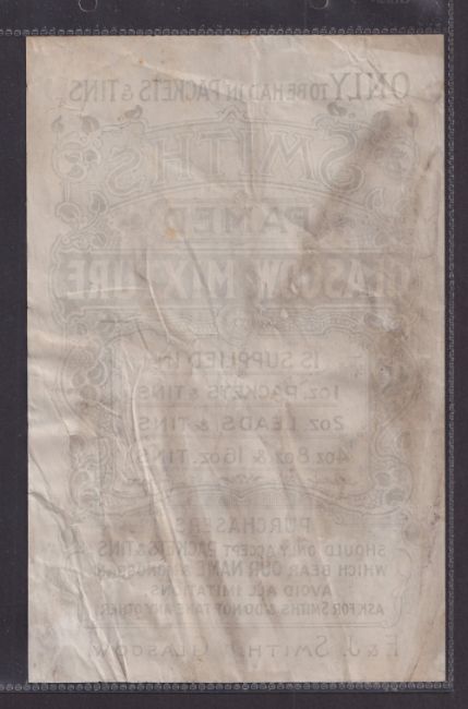 Tobacco Ephemera, F & J Smith's, 6 paper advertising items, 3 paper pouches and 3 paper bags all cut. Three pouches advertise Pen & Pencil, Glory's Reward, Evergreen brands, Paper bag fronts Glasgow Mixture, Cup Tie & Cut Golden Bar (pouches gen gd, bags grubby)