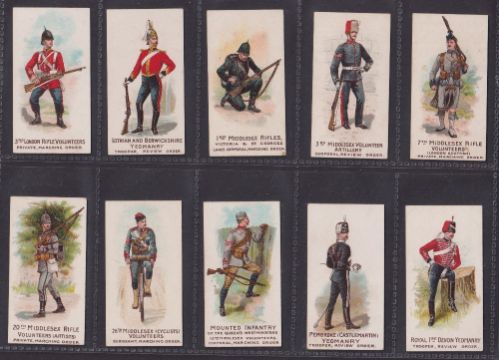 Cigarette cards, W H & J Woods, Types of Volunteers & Yeomanry (set, 25 cards) (couple slightly grubby, near gd, gen gd/vg)