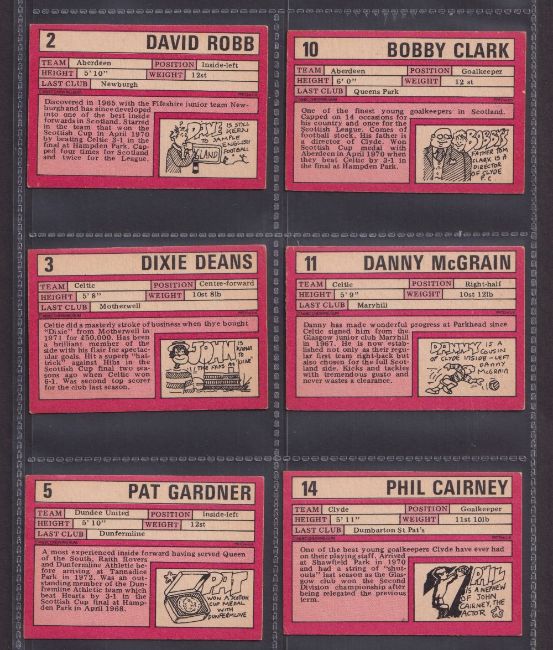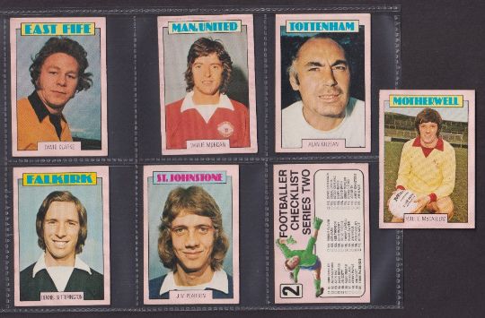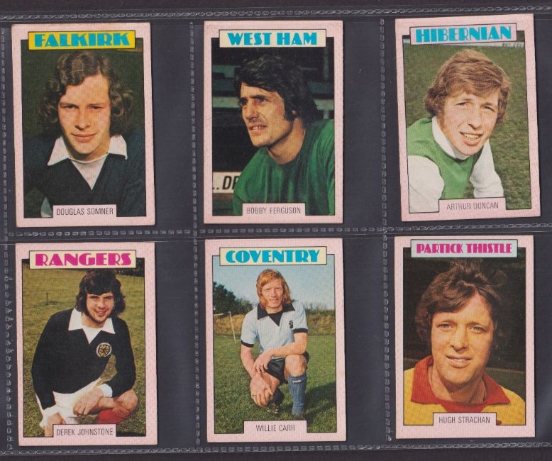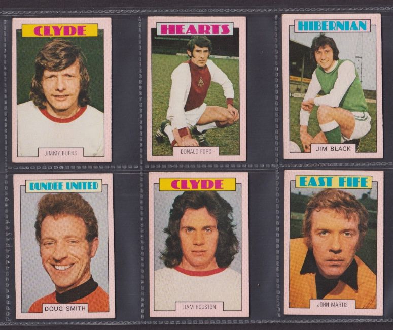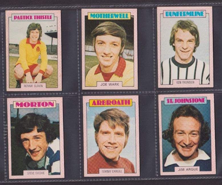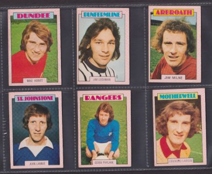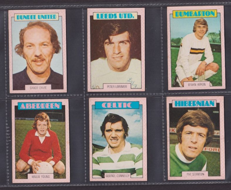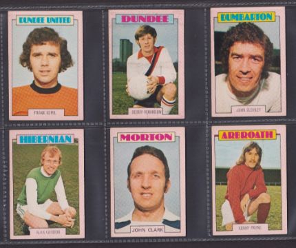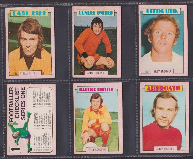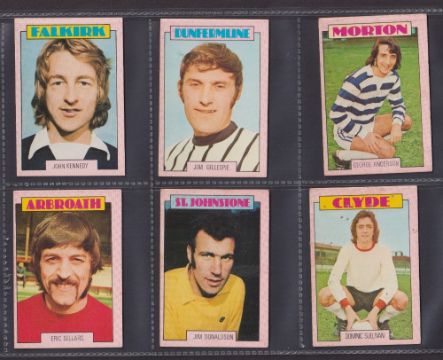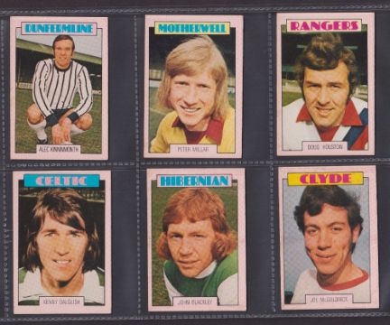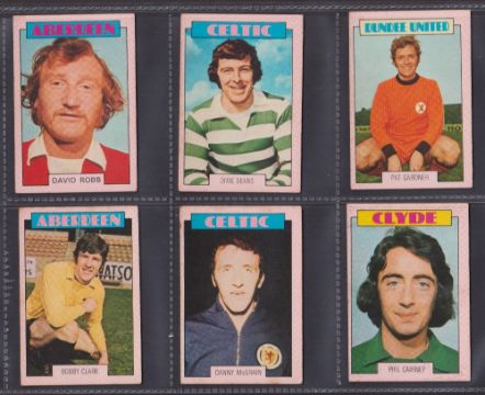 Trade cards, Football, A&BC Gum, Scottish, 1973 (Red backs) 67 cards (32 cards numbered 1-90 & 35 cards 91-178) includes both checklists, which are not marked. (gen gd/vg)