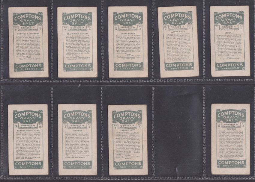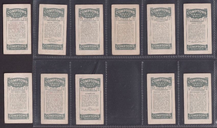 Trade cards, Football, Compton's Gravy Salt Football Serie A (Coloured version), 20/22 (missing 7 & 18) (fair/ mainly gd)