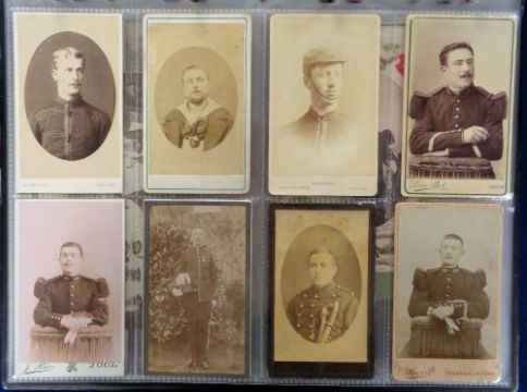 Photographs, Military Cabinet Cards and Cartes de Visite 40+ images, late 19th to early 20thC, mostly UK with a few French, portraits, groups, officers, other ranks. All presented in sleeves in a modern album (gen gd)