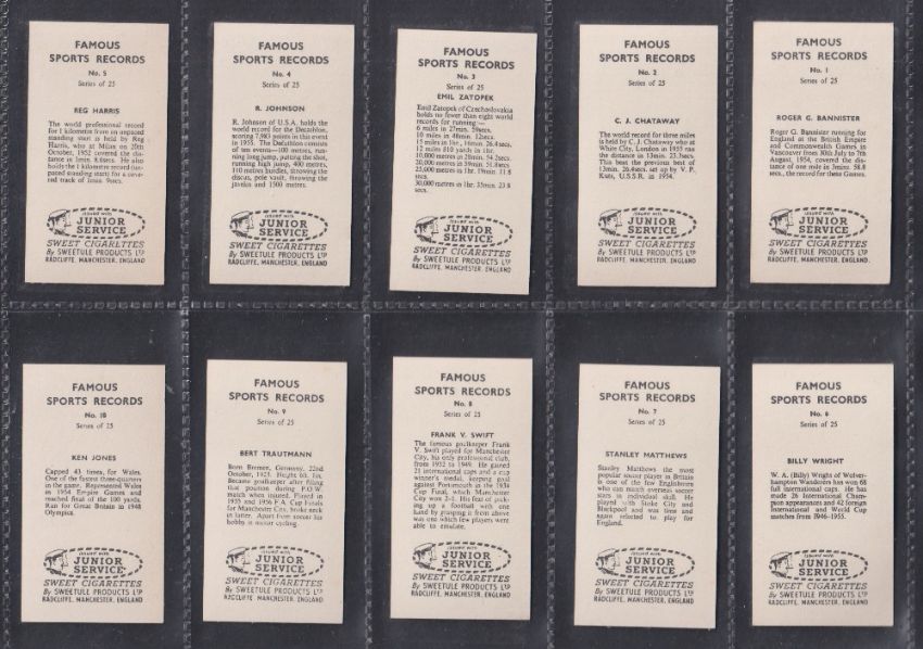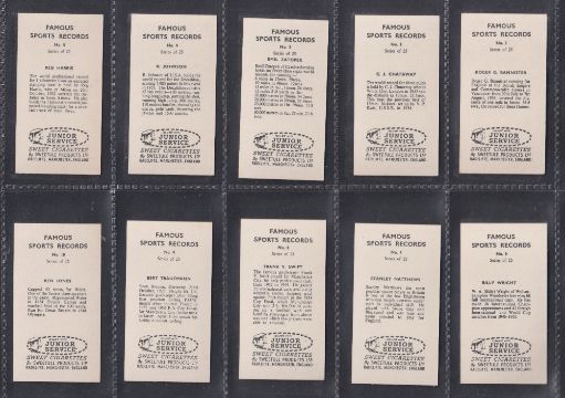 Trade cards, Sweetule, Famous Sports records (2 sets) blue and black back versions. Includes Joe Louis, Donald Bradman etc (gen vg)