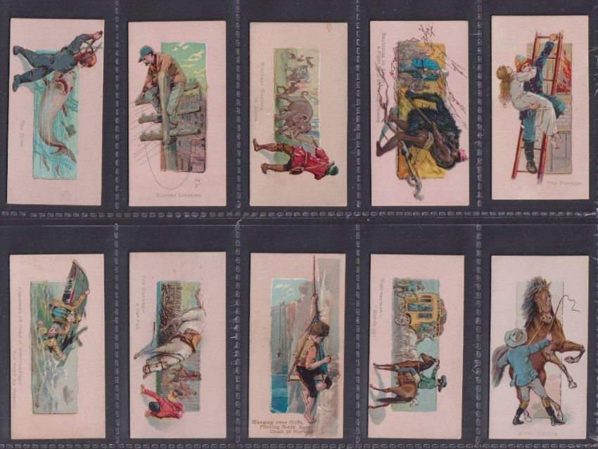 Cigarette cards, USA, Duke's, Scenes of Perilous Occupations (Pink background) (set, 50 cards) (gd)