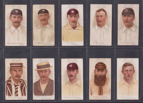 Cigarette cards, Cricket, Wills, Cricketers 1901 (set 50 cards) including W G Grace, C B Fry, K S Ranjitsinhji etc (a few with slight marks, gen gd)