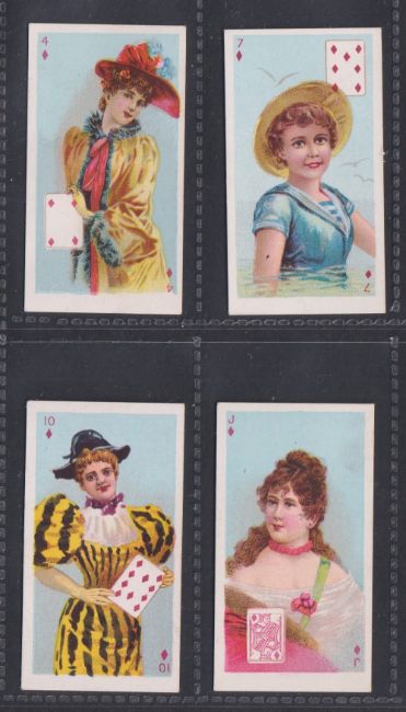 Cigarette cards, Canada, D Ritchie & Co, Beauties, p/c inset, Ref 500-200, Third set back in blue, 4 cards, 4D, 7D, 10D & JD (vg) (4)