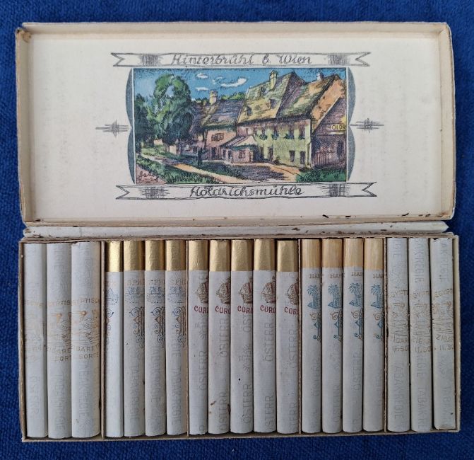 Tobacco Packets, Original box and contents, Osterr Cigarettes, complete with 19 'His and Hers' cigarettes. Presented in a special commemorative box issued c1928 to mark 100 years since the death of Franz Peter Schubert (adhesive tape mark to the base of the box, otherwise just minor wear)