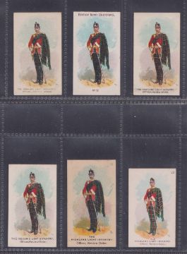 Cigarette cards & Postcards, Specialised collection of Military cards In 11 modern double postcard sized albums. Each album has groups of cards themed either by Regiment or by Officer. Majority of Postcards are post war, with some earlier ones noted. Cigarette cards contain a wide spectrum from common examples (including a few reprints) to scarcer items. Some scarcer issues noted in this collection are Salmon & Gluckstein Heroes of the Transvaal War, Ogden's Army Crests & Mottoes, Home & Colonial Stores War Pictures, Cohen & Weenen War Series various Drum Horses issues and many more (gen gd/vg)