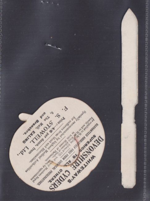 Trade card, Whiteway Cyder, Apple & Knife shaped advertisement card, Trade Index ref WHI-350 (gd)
