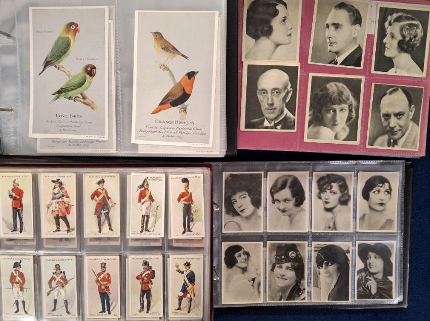 Cigarette & Trade cards, large collection in 9 modern albums and plastic sleeves (a few thousand cards), some sets noted but mostly part sets and odds. Various trade issues including De Beukalaer, Caperns, ROSPA, Cereal issues etc, Tobacco issues including Player's, Will's Hill, Boguslavsky etc. Various subjects including Films, Nature, Sport etc (very mixed condition, majority in the fair / vg range)