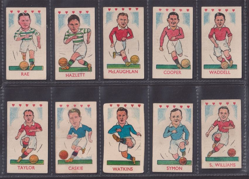 Trade cards, Kiddy's Favourites, Popular Players (Hearts on Front) Footballers, 50 different cards, numbered between 1-78, issued with some skipped numbers (gd)