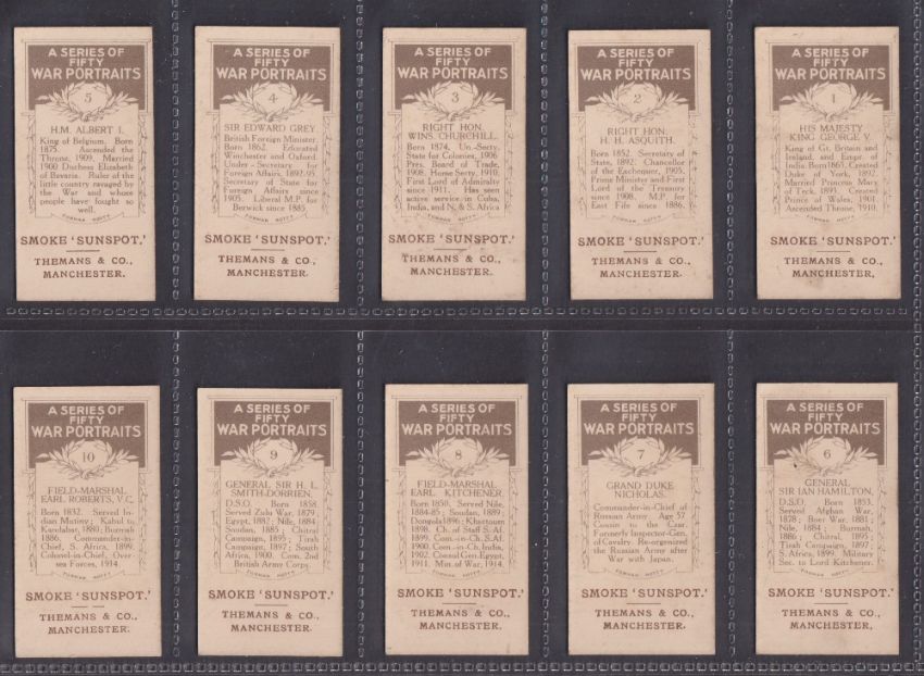 Cigarette cards, Themans, War Portraits (set 50 cards) including Winston Churchill (some with slight marks, gen gd)