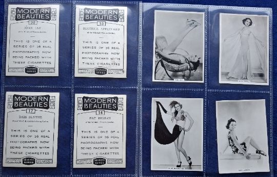 Cigarette cards, Glamour, selection of approx. 390 Glamour & Beauties cards in modern album. Sets (3) and part sets. Sets are Ardath Grace Beauty 2nd 46-90, Allman Pin ups std size, Anonymous Careless Moments, part sets include BAT Modern Beauties various series, Ardath Real Photographs including 9th series XL 51/54, Ardath Photocards etc (mixed, gen gd/vg a few fair)
