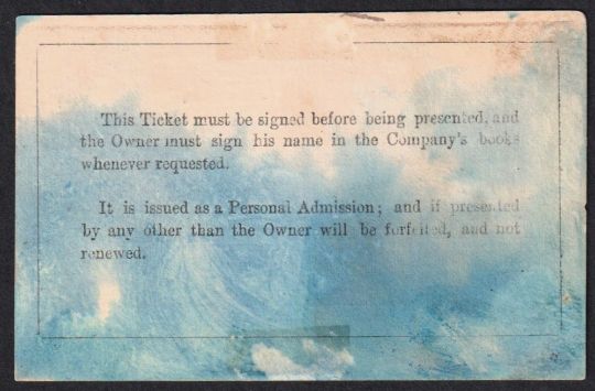 Ephemera, 1863 Crystal Palace Exhibitor Admission Ticket, (approx. size 3.5 x 2.5") (gd but with some blue staining)