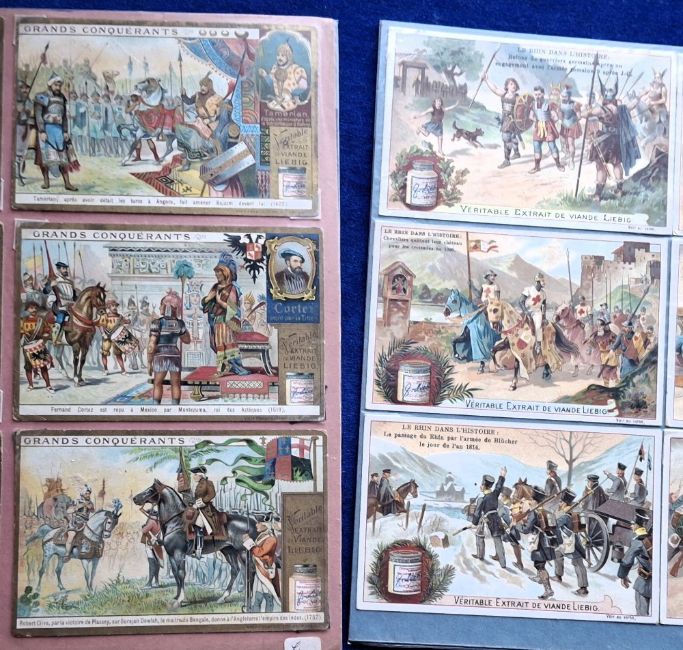 Cigarette & trade cards, 11 sets Wills & Players, including Arms & Armour, Cycling, Famous British Authors, plus 10 continental sets (9 Liebig issues c1900 & 1 Linde mounted on card, but can be removed) and approx. 60 loose French Language Chromo trading cards from various series (gen gd)