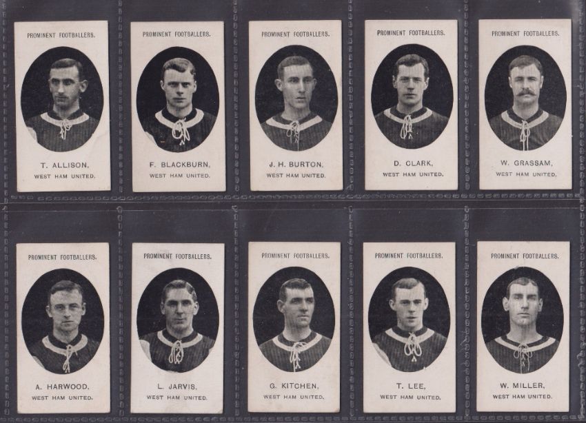 Cigarette cards, Taddy, Prominent Footballers (With Footnote, 1908), West Ham (14/15, missing Yenson) (some with slight marks, gen. gd) (14)