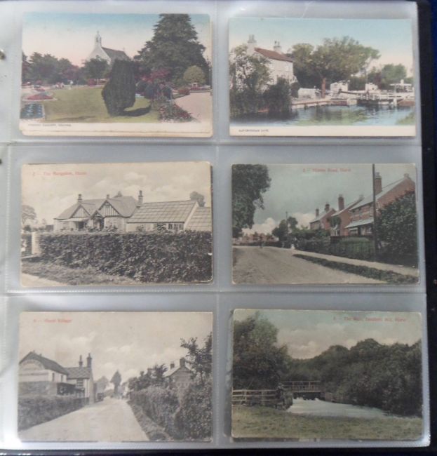 Postcards, Berkshire/Oxfordshire, a collection of approx. 264 printed cards of Reading, Caversham, Goring, Pangbourne, Wallingford, Wargrave (and station interior), Hurst, Twyford, Henley, Streatley, with many good street scenes. Also Nettlebed, Streatley and Twyford Mills, Mortimer, multi views (vertical), Ship Hotel Reading with interior views (6) (mixed condition)